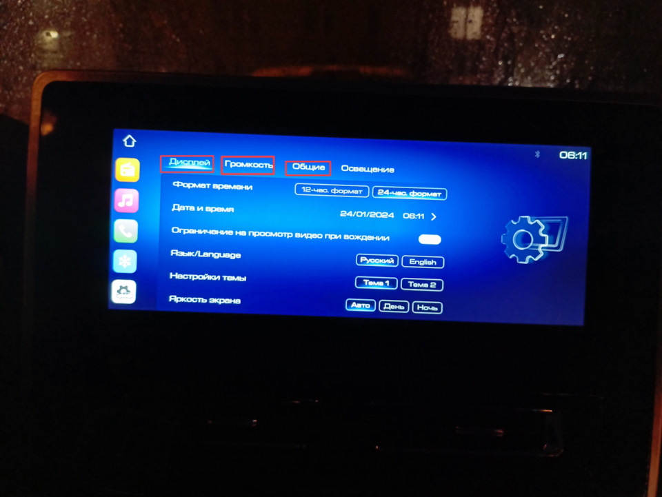 2.1. Поочереди 6 раз нажимаем на выделенные вкладки в таком порядке: "Дисплей" -> "Громкость" -> "Общие".