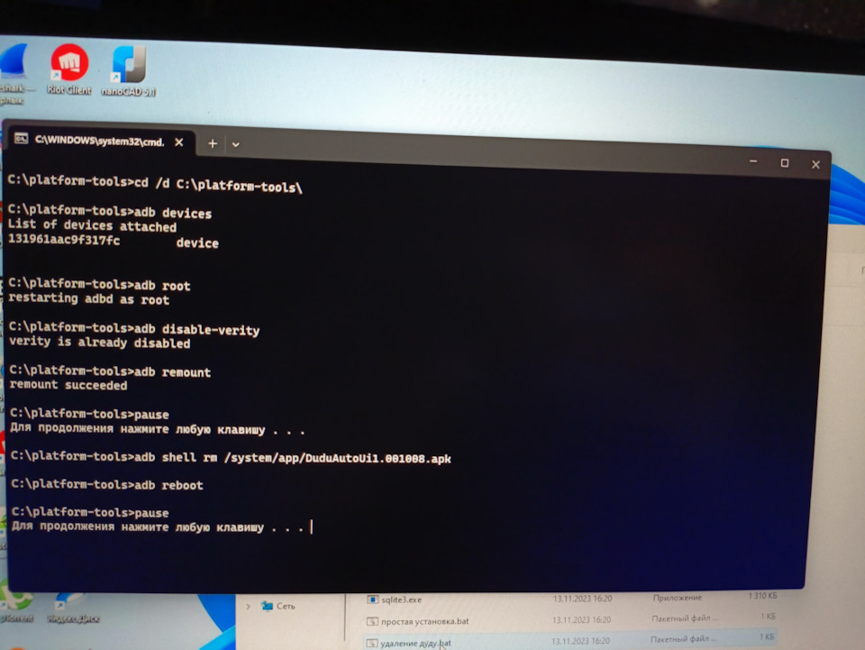 Также в архиве, в папке platform-tools имеются такие файлы, как "установка HUR.bat", "удаление HUR.bat", "удаление всего.bat". Первые два могут быть вами использованы, если вдруг у вас по какой-то причине тупит HUR, таким образом его можно будет переустановить (в таком случае всё равно наличие dudu обязательно, потому что после переустановки нужно будет дать HUR все разрешения перед перед его первым полноценным запуском). Третий же файл нужен для того, чтобы удалить всё, что мы таким образом могли поставить, если вы, например, пользовались dudu для чего-либо, но вот настало время проходить ТО и боитесь показывать нововведения дилеру.